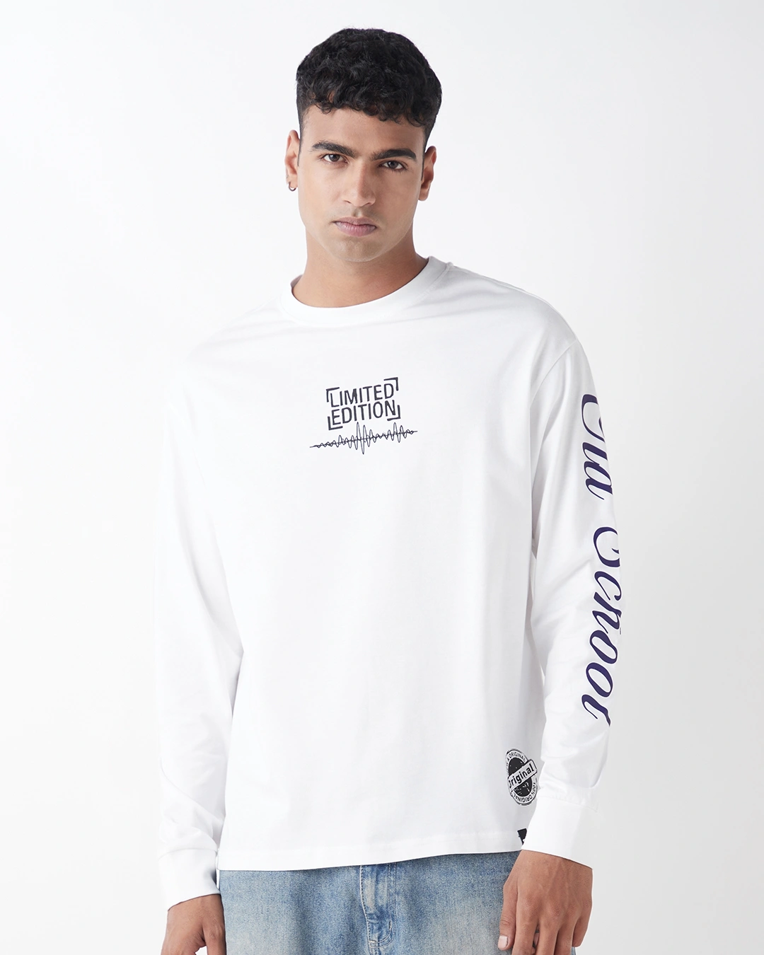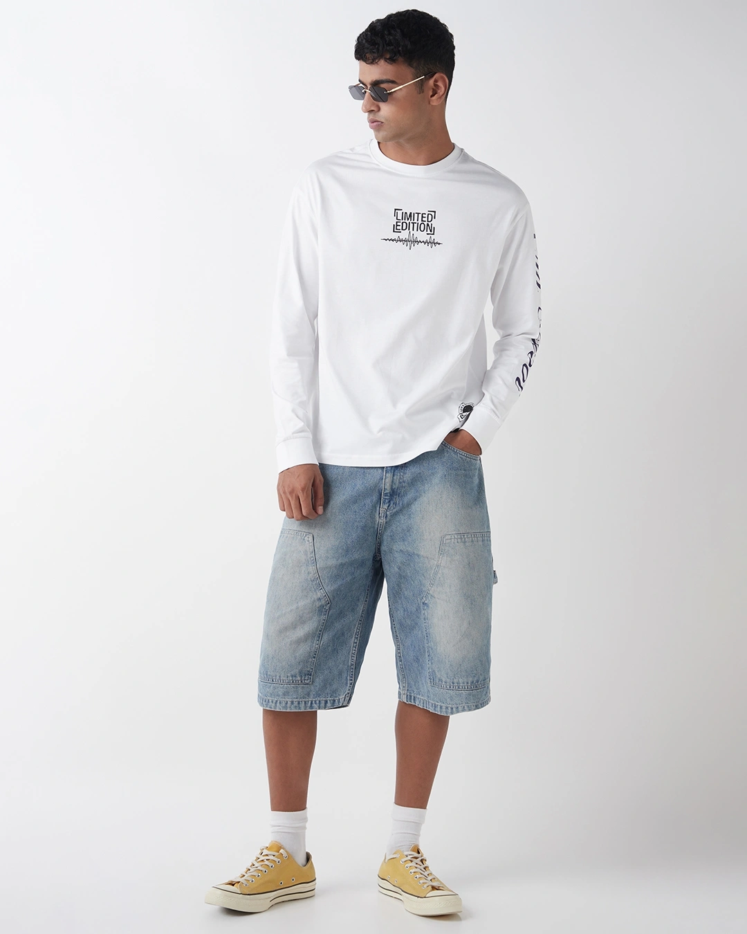 Groove to your own beat with this Headphone Graphic Printed Men’s White Oversized T-shirt. Wear with denim shorts and white high-tops for a music festival-ready look.